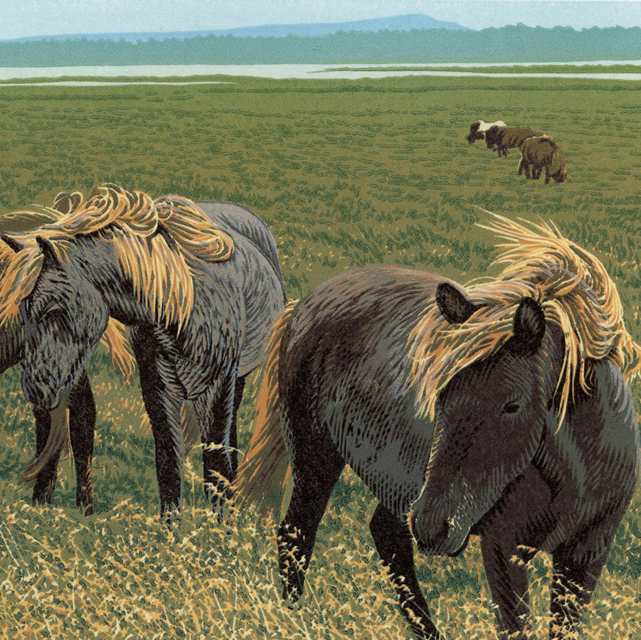 Color linocut on Stonehenge wove paper. Edition of 100. Signed, titled, and numbered in pencil.